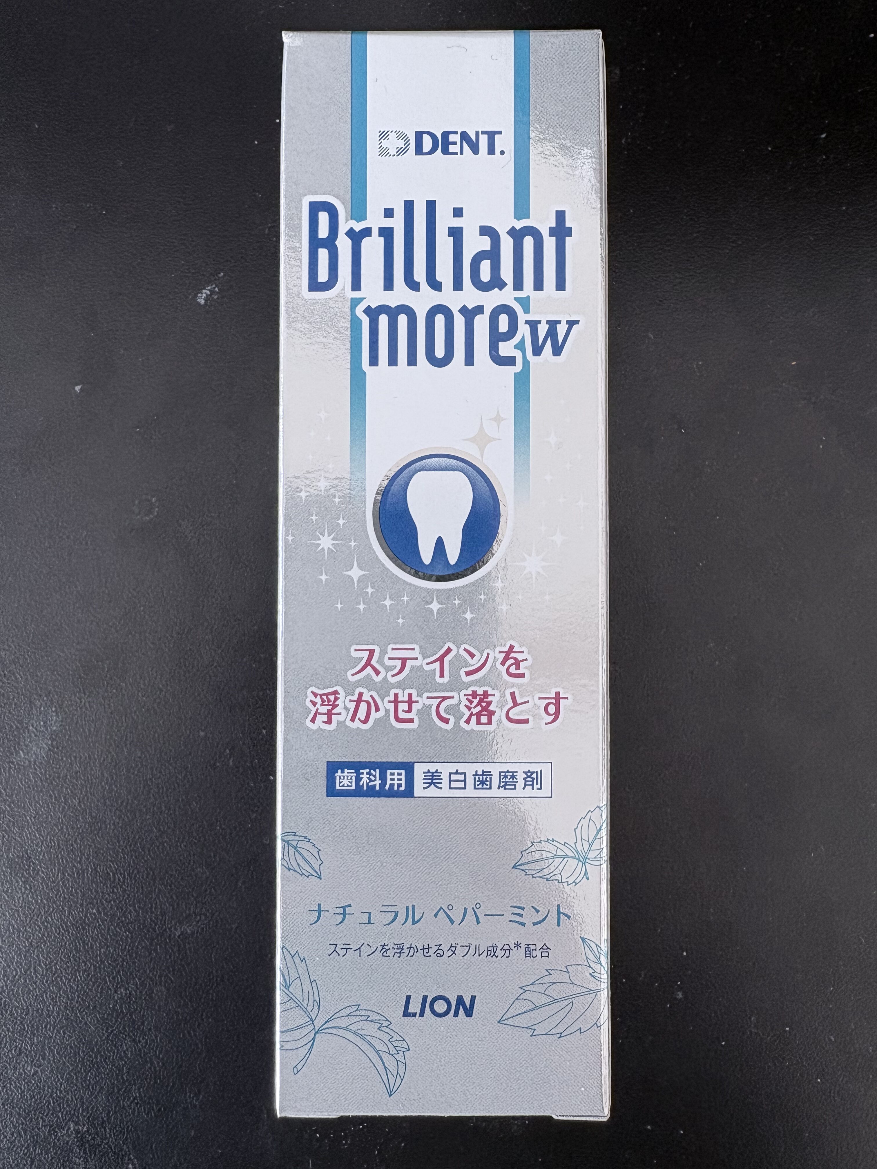 そんな「歯磨き粉なし派」の私ですが、唯一の問題は**「着色(ステイン)」です。 お茶やコーヒーを飲むと、どうしても歯の表面がくすんできます。そこで私が頼っているのが、LIONの「ブリリアントモア」です。